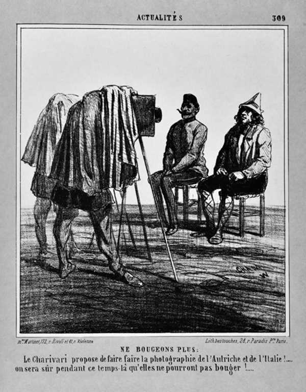 La satira politica utilizza il metodo di fare un ritratto fotografico, che imponeva l’assoluto immobilismo del soggetto, per bacchettare Austria e Italia.