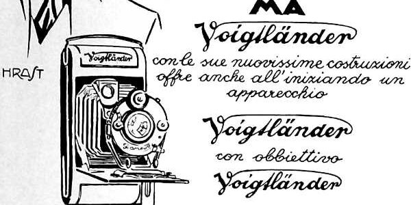 Pubblicità di fotocamere di VOIGTLANDER sulla rivista “IL PROGRESSO FOTOGRAFICO” (1937) con la proposta di fotocamere a soffietto per “…il fotografo evoluto..” e per “…l’iniziando”; insomma “…per tutte le borse…”