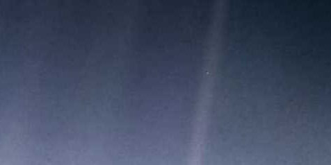 Il “Pallido puntino blu”, minuscolo, è l’ultima immagine della Terra scattata dalla sonda Voyager 1 il 14 febbraio 1990.