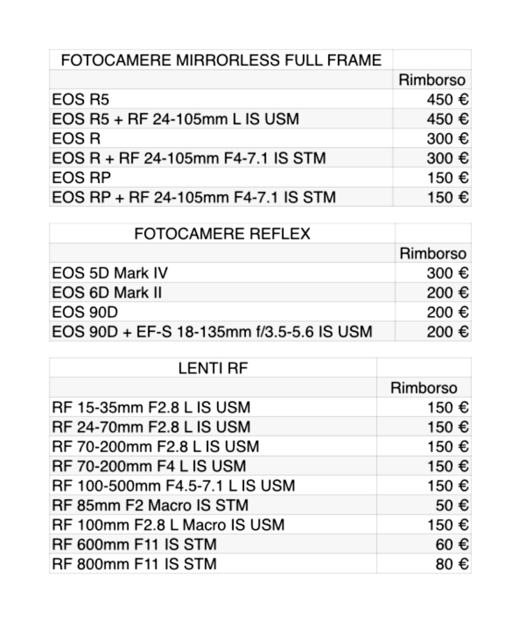 “PROMOZIONE CASHBACK CANON ITALIA”