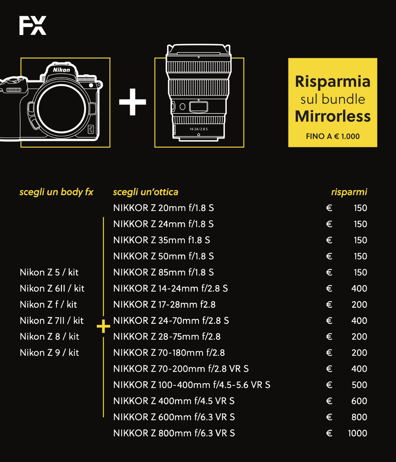 con la quale acquisti una fotocamera NIKON e un OBIETTIVO con uno speciale
