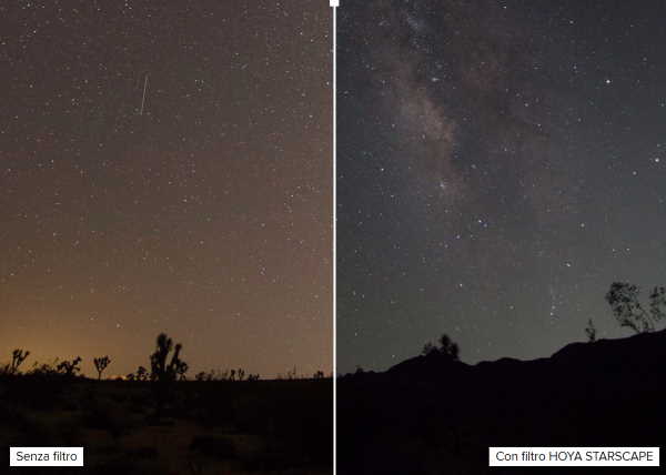 Il filtro HOYA STARSCAPE, disponibile per tutti i diametri degli obiettivi fotografici, è progettato per tagliare la trasmissione della luce nell’area dello spettro che di solito è associata all’inquinamento luminoso da luci a vapori di sodio e mercurio, comuni alla maggior parte delle città in tutto il mondo.