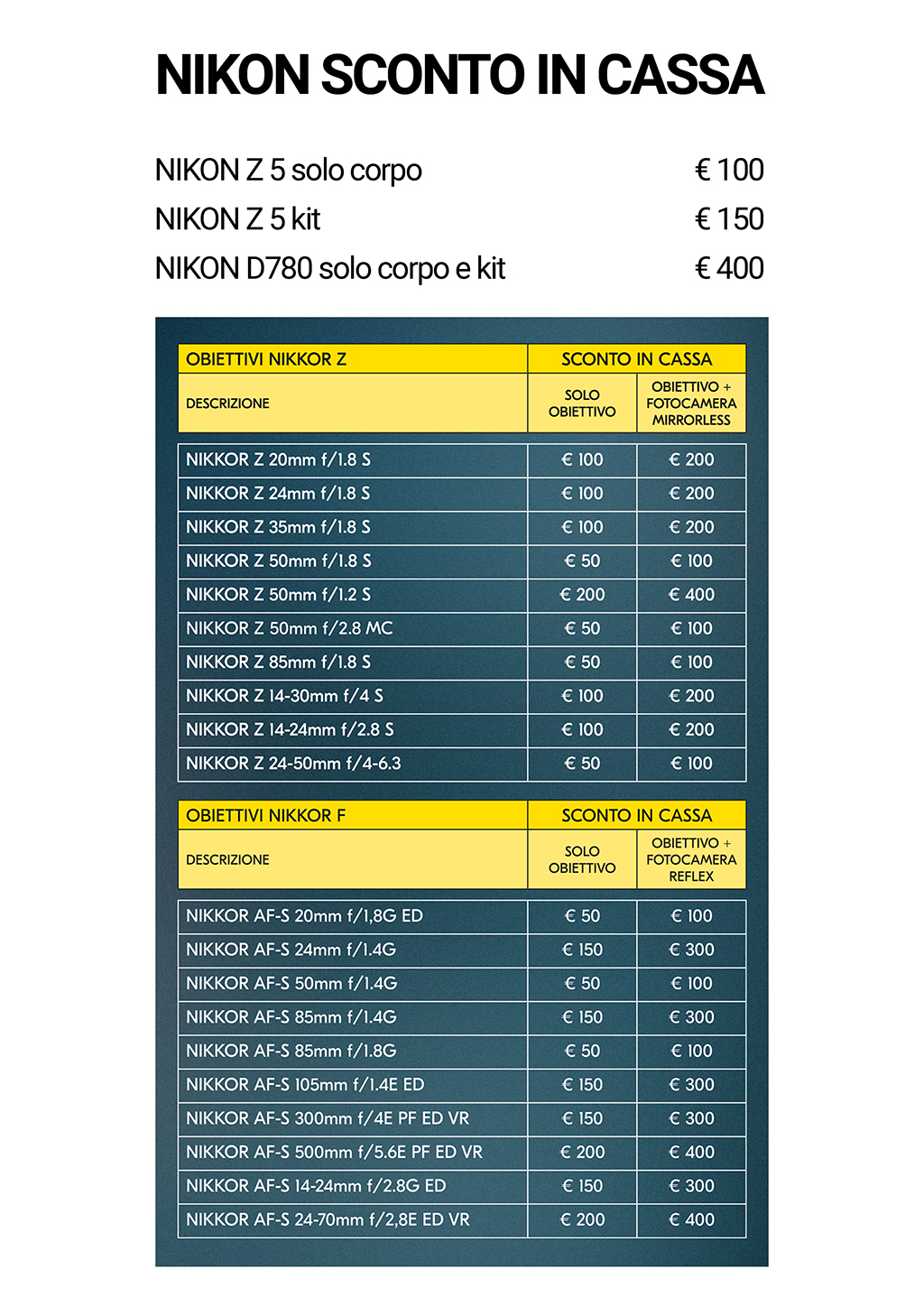 E se acquisti un OBIETTIVO e anche una FOTOCAMERA lo SCONTO RADDOPPIA fino a € 400.00