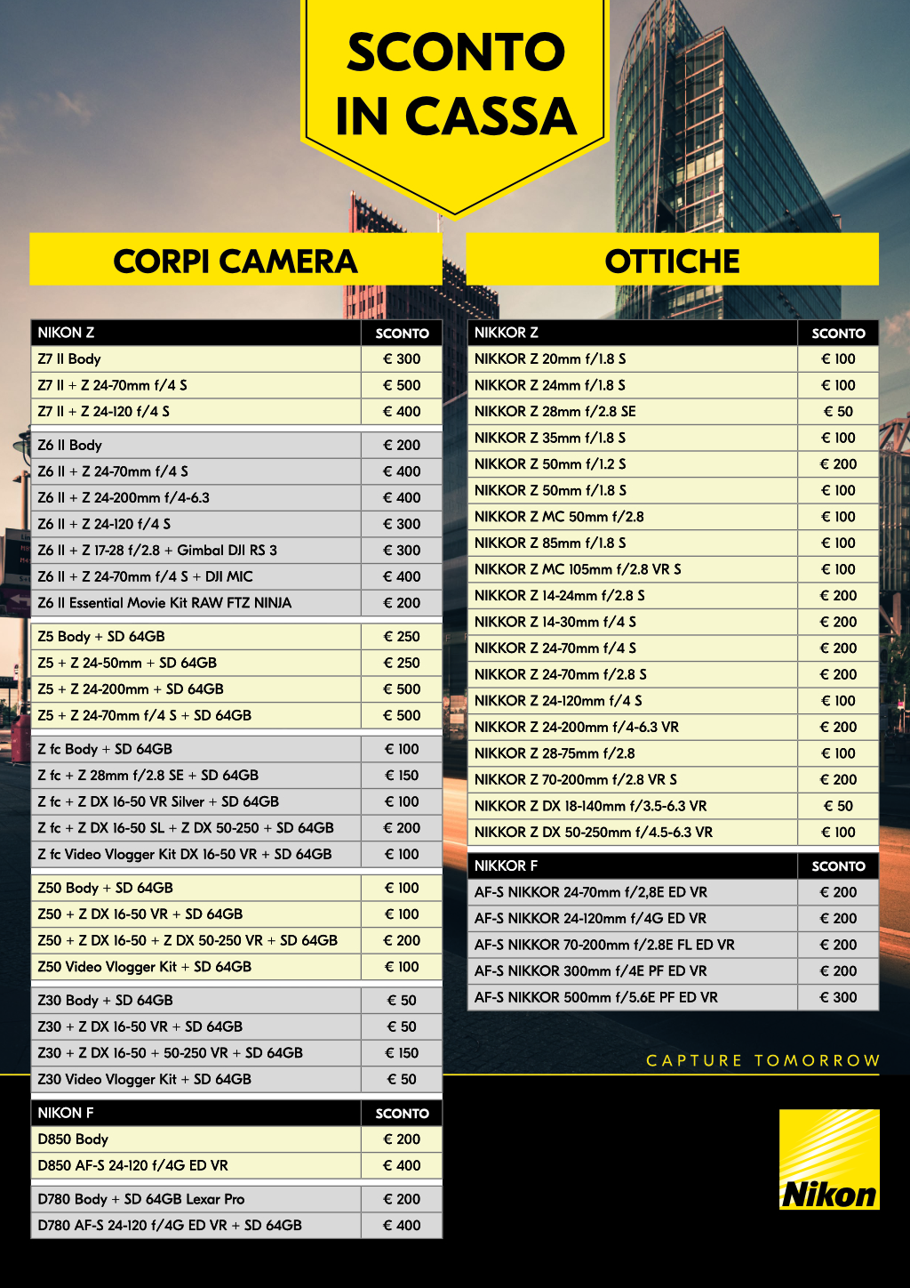 con la quale acquisti prodotti NIKON con uno speciale