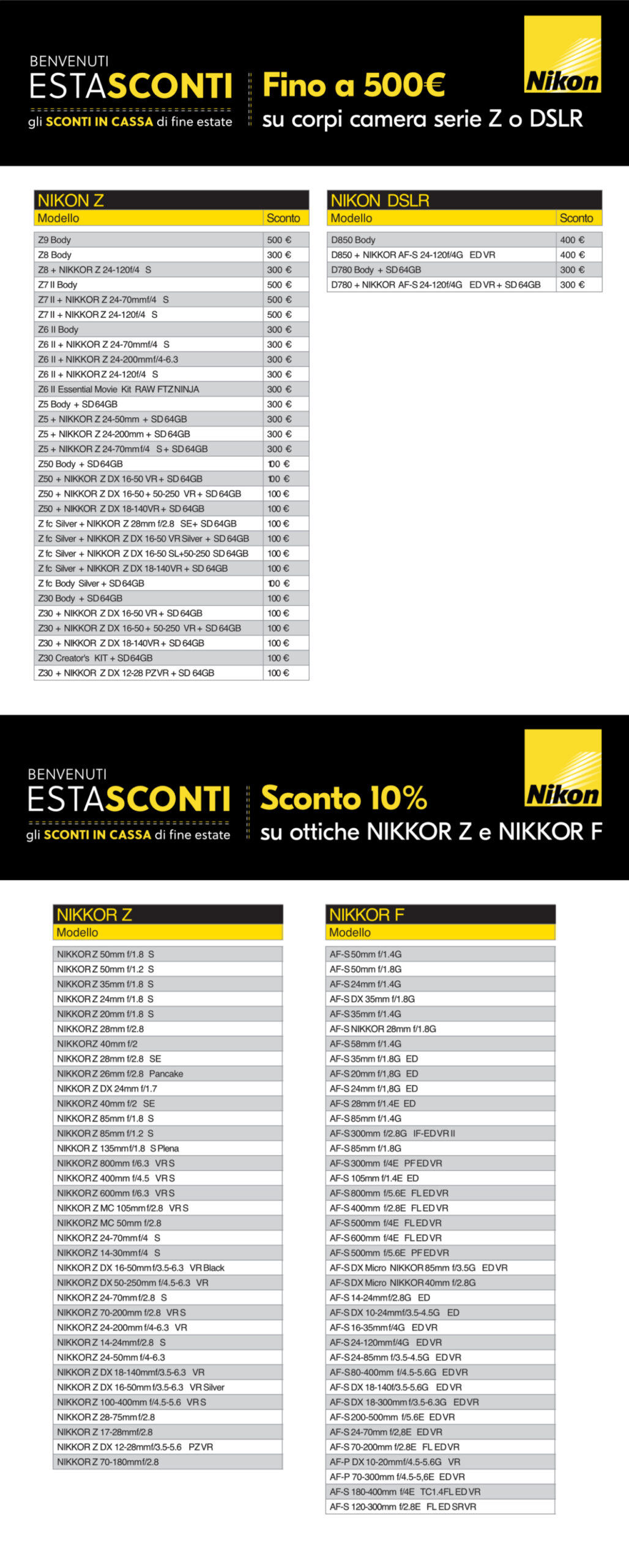 con la quale acquisti prodotti NIKON con uno speciale
