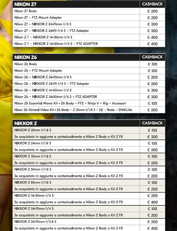 con la quale acquisti fotocamere e ottiche NIKON Z e ricevi un RIMBORSO fino a € 400.00