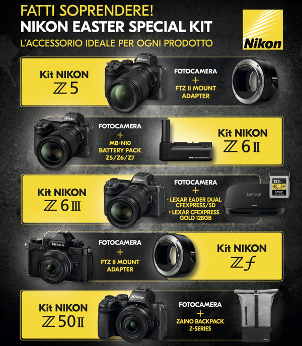 DettagliCon “FOTO ELITE NIKON SPECIALIST” accedi alla promozione NITAL “NIKON EASTER SPECIAL KIT” con la quale acquisti prodotti NIKON e ricevi degli ACCESSORI IN OMAGGIO
